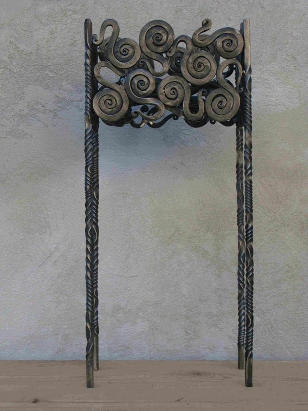 Je recherche la légèreté et l'harmonie dans mes réalisations sans vouloir imposer visuellement le matériau que je travaille : l'acier et le fer.